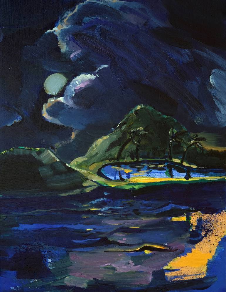 Landscape oil painting on canvas, covered by a thin layer of glossy varnish. The painting was inspired by beautiful and dramatic Caribbean island view of Haiti. The artwork is signed on front and back. The painting can be framed or it can hung on a wall without a frame. Painting is mounted on a str...