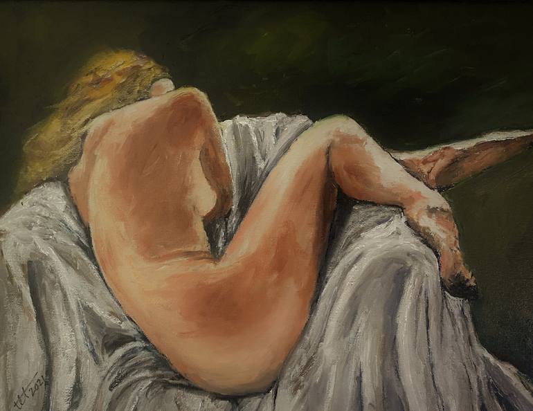 Classical Nude Female Figure Art No. 4 - reclining. Major influence is the work of the French Impressionists, especially Courbet and Degas.