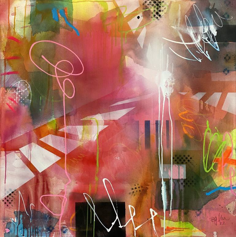 Dream Red No.1 is an expressive abstract painting 80 cm/31.5 in W x 80 cm/31.5 in H, 1,5 cm/0.6 in deep. The painting is mixed media ( acrylics, neon paint, neon pastels, spray paint, dripped acrylics, soft pastels, ink ) on high quality canvas. I love the song "Imagine" written by John Lennon. Its...
