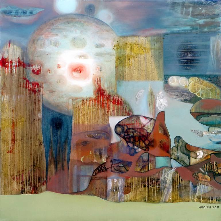 The abstract surrealist artist Alexey Adonin transforms painting into an enigma, guided by an intuition that stages works where light—whether pale or intense—both conceals and reveals a key embedded in a reality whose chromatic texture lends it an idealized character. The sensory qualities of color are inseparable and osmotic, enveloping these inscrutable landscapes as if they were the site of an oracle, within which a mystery unfolds, accessible to only a few. As the philosopher Theodor W. Adorno once noted, the most fitting notion for grasping the essence of art from a cognitive perspective is that of an enigma. In Adonin’s work, an enigma indeed exists, and he does not shy away from this mission. (Taken from The Doors Are Open, an article by Gregorio Vigil-Escalera.)