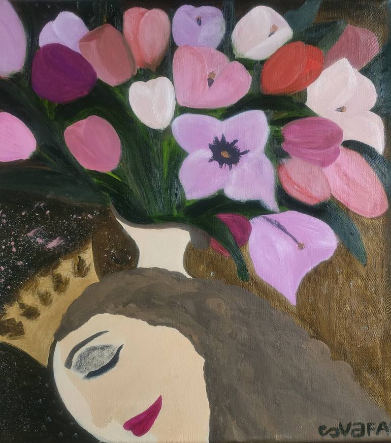 "Dream of a Princess" is a captivating figurative surrealist painting that invites viewers into a tranquil, dreamlike realm where imagination and serenity intertwine. The central figure is a delicate woman depicted in profile, her skin rendered in a soft, neutral tone that exudes calmness and grace....