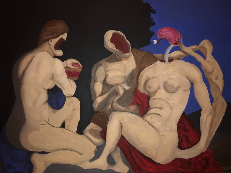 A reinterpretation of Peter Paul Ruben’s Venus, Cupid, Baccchus and Ceres, this work filters reality through the dreamlike imagery of the surreal landscape.