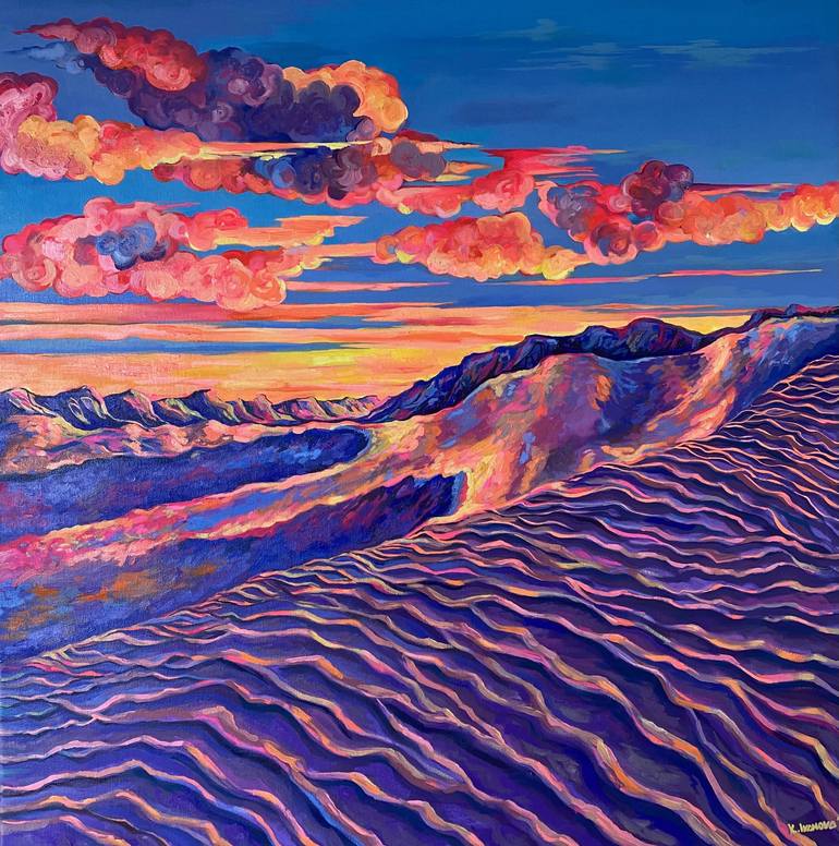 I enjoy landscapes, I also see them magically through my eyes. I love the sunsets, I love the sunrises, they all bring their special touch to the nature. Enjoy the beautiful colors in this piece of art!