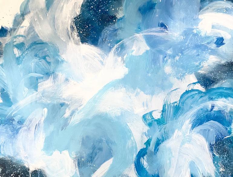 During a heat wave I was literally dreaming of water and waterfalls and this painting came about. With lots of varied blues this painting has a cool and soothing feeling. With painted sides this painting is ready to frame and hang as is or framed.