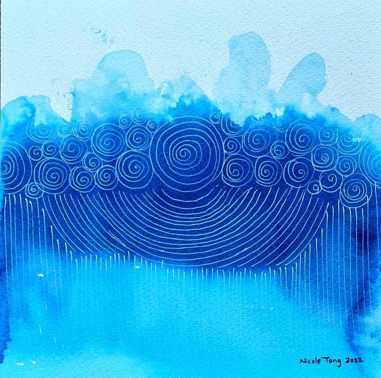 'Dreaming' sees an abstraction in the depiction of mountains, a common theme in the artist's work. Inspired by her Chinese ink paintings of landscapes, this new style is a contemporary reinterpretation of her work. This painting is a surrealist dreamscape with a lot of movement in the mountains. 'Dr...