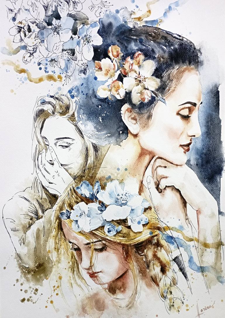 Hello ! I am an artist from Ukraine. I draw and painting from early childhood. Creativity - my whole life. In my work, I am inspired by the world around me: nature, the female image, the architecture of cities, the sea. I like to express my understanding of the world and what is happening through symbolism in paintings. In my paintings I often use stylization, ornaments, collages of figures, flowers, architecture. The female image is the most important for me in painting. In my work, I am inspired by the surrounding world: nature, the female image, the architecture of cities, the sea. I like to express my feelings and understanding through symbolism in the paintings. I love watercolor for its elusiveness, danger, unpredictability. I find these traits in the female image as well. Watercolors are delicate, unpredictable, you never know how the paint will lay on paper, how the colors will flow and mix. I love to create series of paintings that inspire me: woman, flowers, Renaissance, Impressionism, Art Nouveau. Watercolor is my whole life! It is light, airy, momentary - as the paint lay down, so it will be. Therefore, when you create a picture, you don’t fully know how it will end up. I often draw tender, vulnerable female images, as I myself have been subjected to sexism, humiliation, pressure due to the fact that I am a woman. I myself fought for my freedom of expression, I am proud that I am an artist. With my painting, I inspire people to search for beauty around us. I take part in art exhibitions. I never expect inspiration in my life! It is always with me. My motto is beauty, light, harmony in every work! I have been painting since birth. I studied for many years and still do not stop improving in painting. I always said that I would create under the bombs. And now this time has come. And yes, I continue to work. Only now I'm sitting with a brush, and inside I'm squeezing from anger, pain, resentment. Many of us fight in different ways: someone with a gun, someone with a word, someone with creativity. I loved symbolism and now I am trying to convey the bright image of Ukraine with gray, dark colors. .larina.art