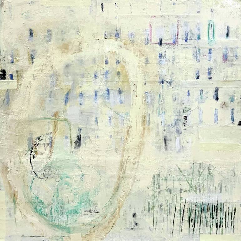 Part of my series exploring textures, marks and shapes. Many layers of oil paint and pastels, scratched through to reveal what went before. Painting is on unstretched canvas and stretching/ framing is up to the buyer.