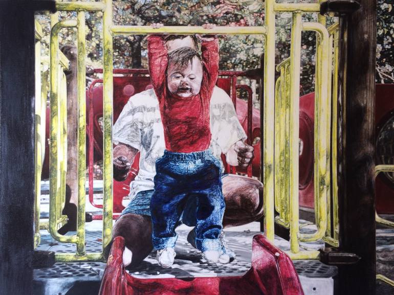 This is an oil on Belgian linen.The work measures 27" high x 36" long x 1.5" deep. The back of the stretcher is hand signed and hand numbered by the artist. The signature (S. Mozer) and the date (2019) appears on the face of the work in the form of a rebus in the lower right hand side of the work, u...