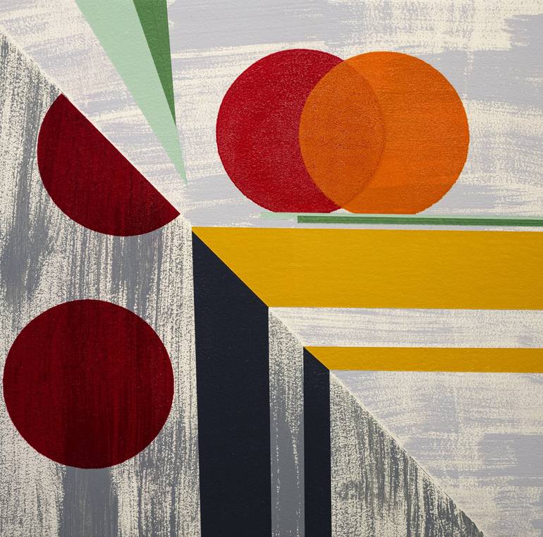 Mixing the "painterly" with a hard-edge minimalism, this work conveys a mid-century mood and is simple yet complex in subject matter. Contemplate it :7)