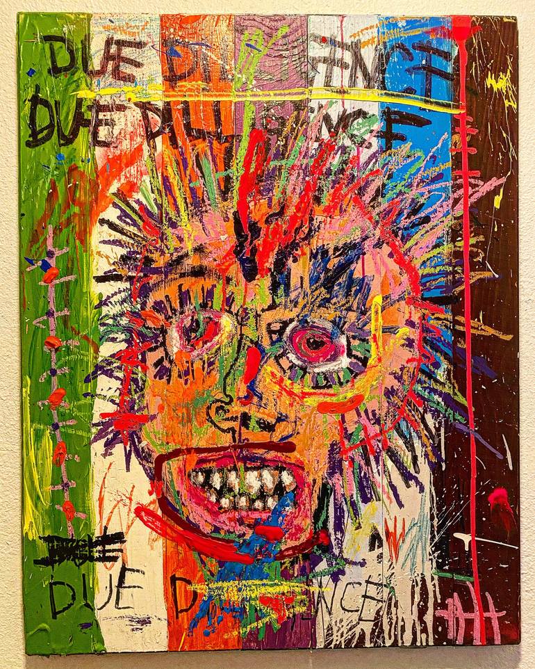 This abstract portrait is a fairly common occurrence in my work, this one happens to be on multiple pieces of connected wood. Due Diligence was just a phrase going on in my life at the time, these faces used to be more common, I’ve gotten alot more into giant wall sized murals during Covid.