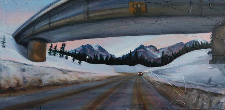 This painting is part of my Canadian Rockies Roadtrip series. After a beautiful day of landscape photography in the Canadian Rockies, I was taken by this scene on my drive back to the Deer Lodge in Lake Louise. The soft, pastel colours in the sky, the deep snow and towering mountains contrasted wit...