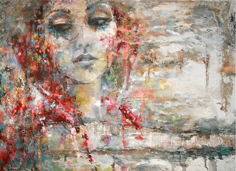 I enjoyed creating a lot of embossment/texture in the underlay with jute fabric, cardboard and thick gesso. It gives the painting a wonderful rough touch. After creating the underlay I painted this interesting woman in oil with thick and some thin brushstrokes. It seems she appears within dust in th...