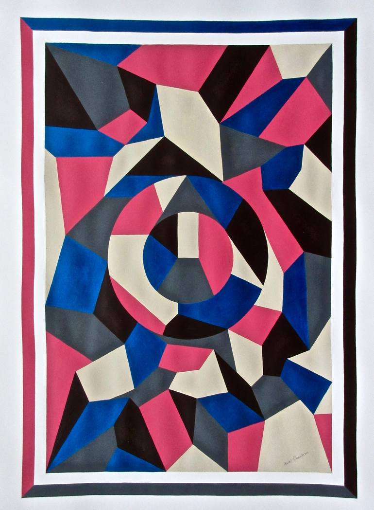 " Dynamism " is a captivating cubist painting, created with acrylics on high-quality watercolor paper. The artist's distinctive color palette and masterful technique bring a sense of movement to the forefront. Notice how the large, almost three-dimensional forms interplay with each other, enhanced b...