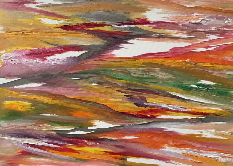One day I had a heart problem. And I passed out. A few days later I made this canvas. The picture started vertically with a black line that looked like an electrocardiogram with its up and down. Then the picture called the colors and the colors arrived. Then in the end I turned it 90 degrees and I l...