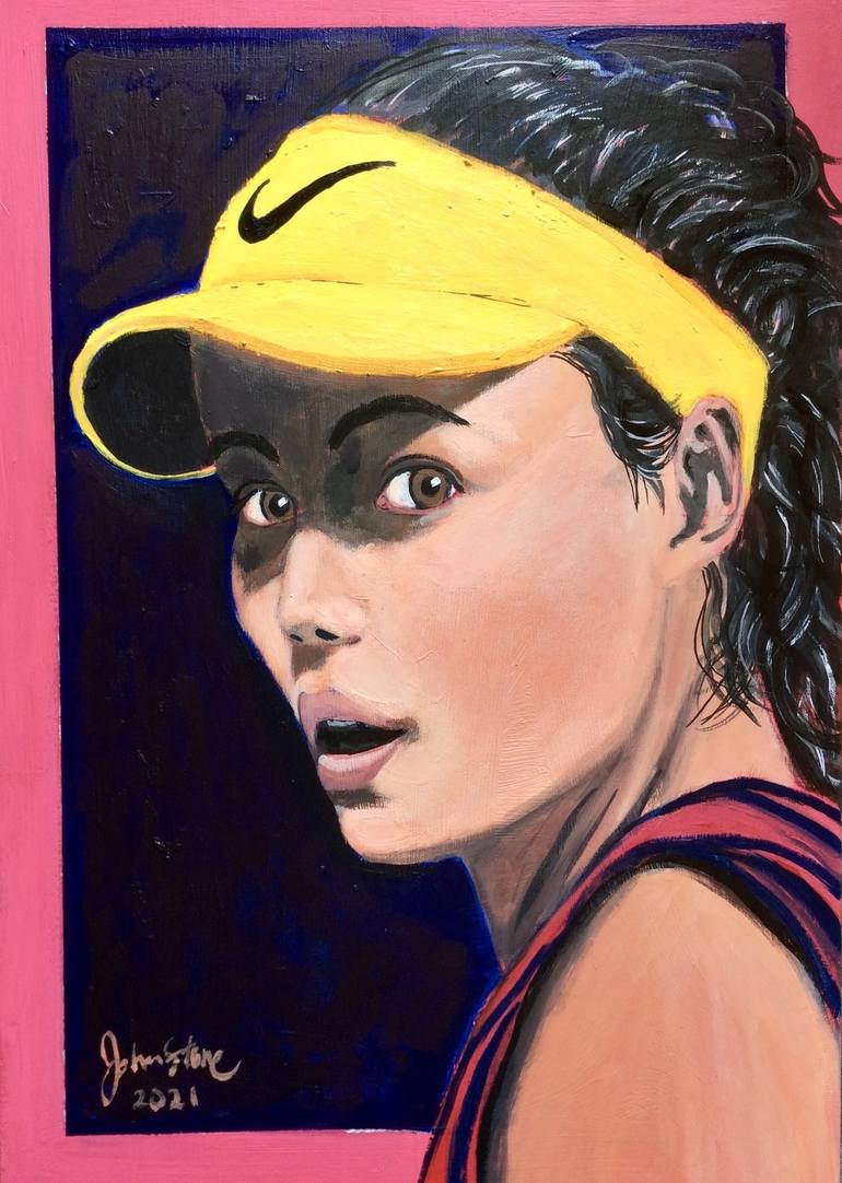 This is Emma Raducanu the reigning US Open tennis champion. She's going to be around for a long time. I so much enjoyed doing a recent watercolour painting of her that I decided to do a larger version. So here it is.