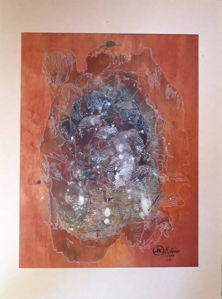 J'ai realisé des monotypes pendant une grande période ; j'utilisais la peinture à l'huile qui pénètre bien le papier. je préparais les fonds avec de l'huile très diluée, ce qui permettait des couleurs très personnelles, impossibles à trouver dans le commerce. Les formes de ce monotype sont réhaussée...
