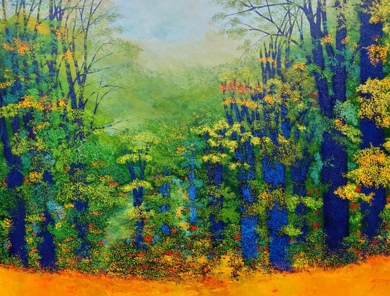 ALVARO DAZA Colombian artist Alvaro Daza was born in 1950. and is an artist of his time, earning great recognition local and internationally, not only for his work , but also because he is his greatest promoter, appropriating an unmistakable style that allows anyone who sees his work to assert that the magic inventions are no one else´s but Daza´s master pieces. His work are explosions of color that seems to emerge from magic landscape that he also paints, colors that grow and mature like his trees, which hide beneath their bushes abstracts and sculptures , the fruits of a masterly expressionism. Daza works in mixed-media, landscape, modern, painting, abstract, and sculpture.