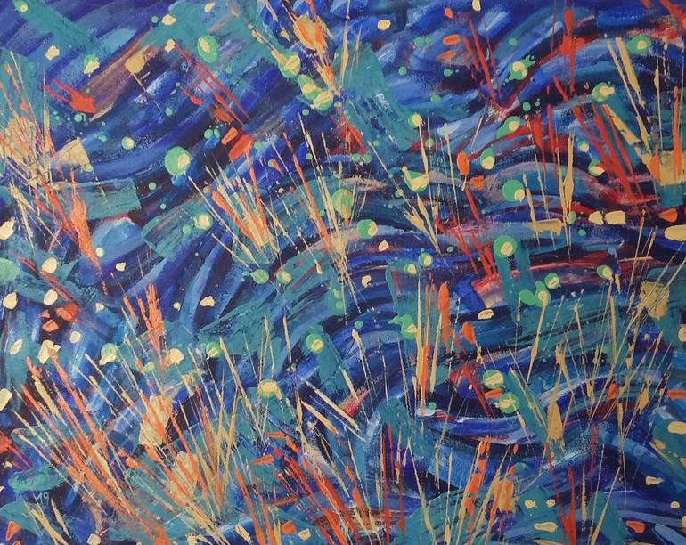 Inspiration from nature. Energy burst in magical forst full of colorful plants and trees