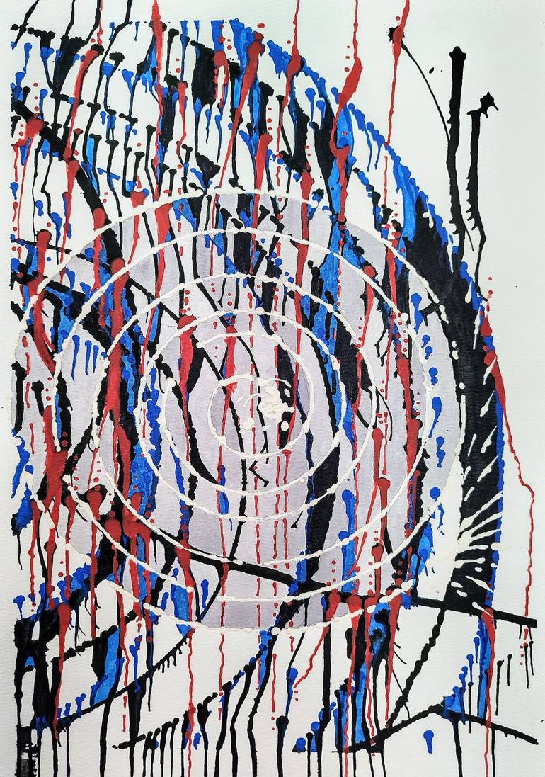 In the center is a spiral of concentric circles, like a target into which life itself falls. Around them is an explosion of colors: blue rivers, scarlet flashes, black lightning strikes. The lines dance: some flow like rain from a window pane, others curl like living wires. Interestingly, each drop ...