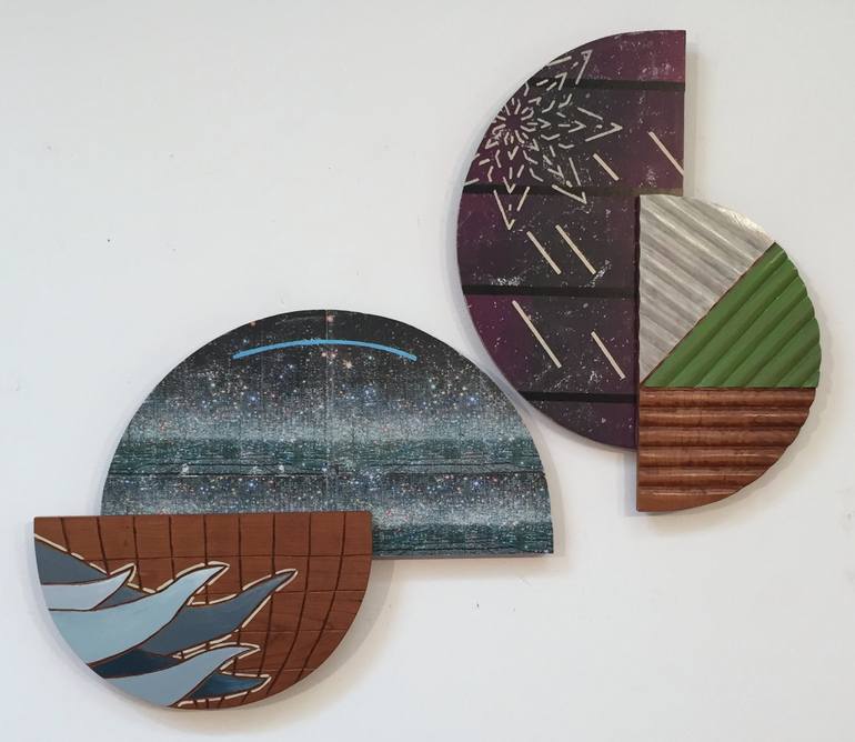 I am interested in my surroundings and have been working on Earth Series, blending various elements of our environment in a unique way. This is a 2 section carved and painted representation of our universe.