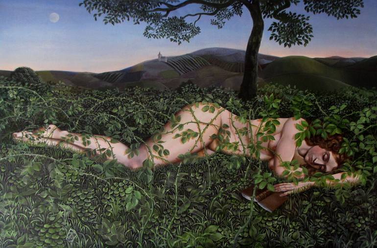 This painting, along with four others on a similar theme was made at the invitation of a gallery in the Netherlands for an exhibition entitled ‘Nude in Landscape’. The title is taken from a poem by Percy Bysshe Shelly. The subject matter is an extension of a theme I have dealt with before in my pai...