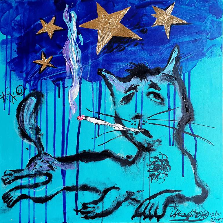 My concept of a humorous and stylish acrylic painting depicting a cool and free-spirited smoked cat intriguing. The combination of expressive contemporary style and humor could create a visually captivating and whimsical piece that resonates with viewers. The theme of a nonchalant and glamorous...