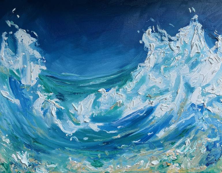 I’ve always been passionate about water. I began swimming before I could walk and have been a fish ever since. Walking out to the ocean is a magnificent getaway. The ocean’s immensity instantly centers me. It was only a matter of time before the sea found its way to my canvas. This work started as...