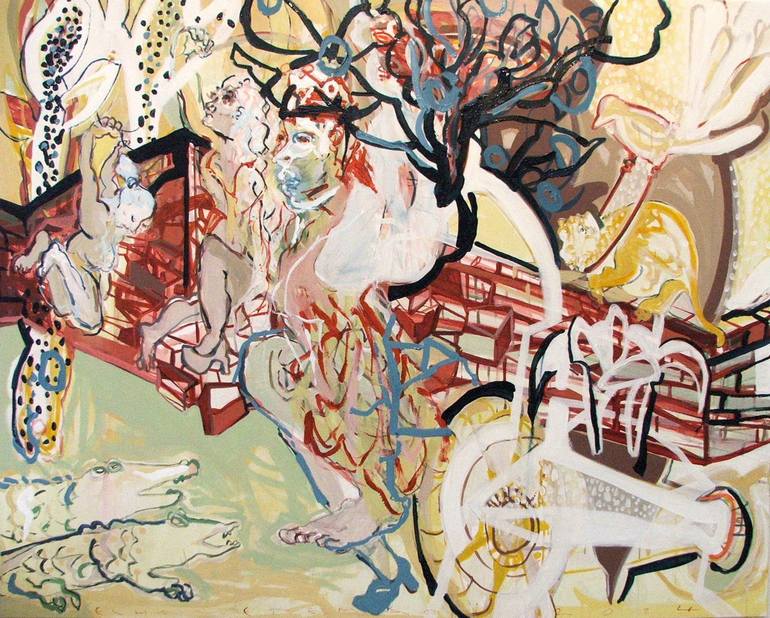 My art explores the intricate interplay between personal memories and nostalgia, capturing the essence of cherished moments while examining the contrast between our inner emotional landscapes and the external realities we navigate. Drawing inspiration from the fluid, dance-like movements of the 'Cobra' artistic movement, I have sought to incorporate elements of both traditions into my work. Gradually, I merged the composition of symbolic elements with free-flowing gestures and movements, creating a dynamic interplay within my paintings. This fusion has added a new layer of complexity to my art, forming a rhizomatic structure that continually evolves. While my pieces still feature familiar symbolic motifs—such as children's toys, merry-go-rounds, and animals—they are immersed in a whirlwind of lines and colors, imbuing them with vitality and energy. This free-floating composition serves as a bridge between the historical context of painting and contemporary expression. Within my canvases, figures and visual elements drawn from my childhood, imagination, and cultural heritage engage in dialogue with the very materiality of painting itself. Spaces teem with life as figures dance across the surface, yet blank areas speak volumes, representing moments of silence or absence. I empower my figures to soar in every sense of the word, adorning them with wings while allowing them to float amidst the dynamic composition that animates my canvases. Architectural forms intertwine with figures, blurring the lines between interior and exterior spaces, infusing them with both rigidity and irregularity. Yet, amidst the swift strokes and vibrant hues, a palpable sensuality emerges, evoking themes of childhood, eros, and mortality—an ode to the power of color and emotion. Through my art, I invite viewers to embark on a journey of introspection and discovery, where narratives unfold and emotions resonate with each brushstroke—a testament to the enduring vitality of the human spirit. Elham Etemadi holds a Ph.D. in Visual Arts in France. She began her academic journey with an undergraduate degree in painting from the University of Art. She further pursued two Master of Arts degrees in Fine Art: the first awarded by the University of Art in 2008 and the second by the University of Strasbourg in 2011. Since 2005, Elham has actively participated in numerous solo and group exhibitions across Europe, America, and Asia.