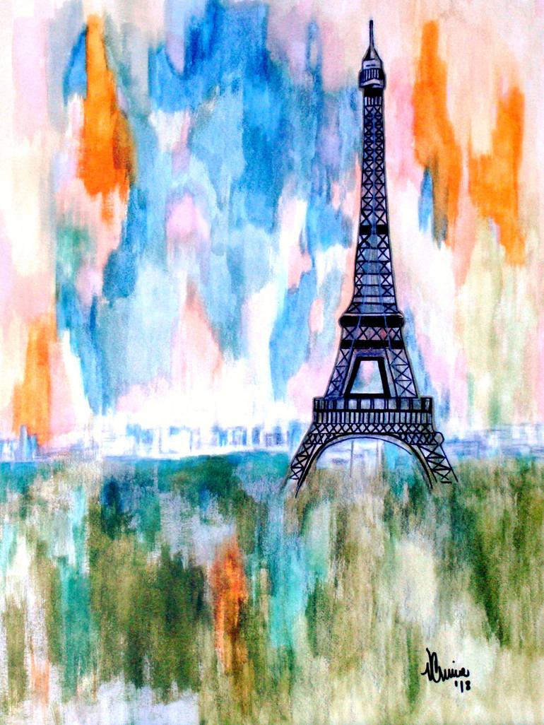 An ink and acrylic abstract rendering of the Eiffel Tower at sunset. Original artwork is on heavy 140 lb watercolor paper. A Certificate of Authenticity will be included with the sale. Prints are also available.
