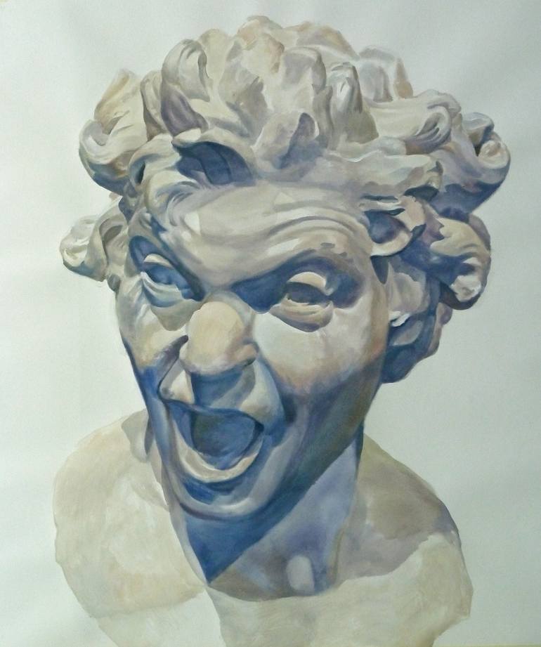 water based paintings on paper Arches 356 grs. . This painting is part of the serie : The murmur of the stones 130 x 113 cm , not framed, original work, signed El momento captado de la Ánima dannata, el alma condenada, el rostro congestionado, los cabellos erizados, la boca abierta en un mudo alari...