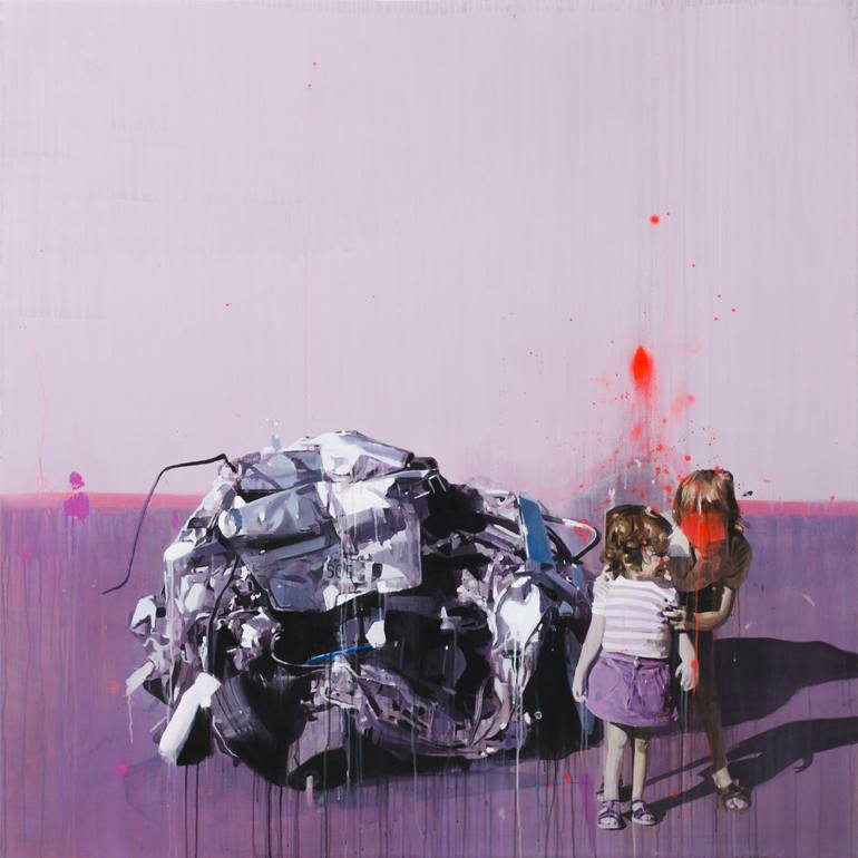 Fernando Gómez Balbontín (1981), is a Chilean artist and architect who has been creating and painting as a way of questioning and resisting his environment since childhood. His creative process involves pictorial experimentation, traveling between figurative and abstract art. His work consists of building a portrait of western consumer society by using recognizable elements such as destroyed technological bulks, phalluses and virgins. These emotionally charged imagery allows him to express a unique perspective on the links between death, consumption and religion. His paintings have been exhibited internationally and are part of private collections in Chile, China, the United Kingdom and the United States.