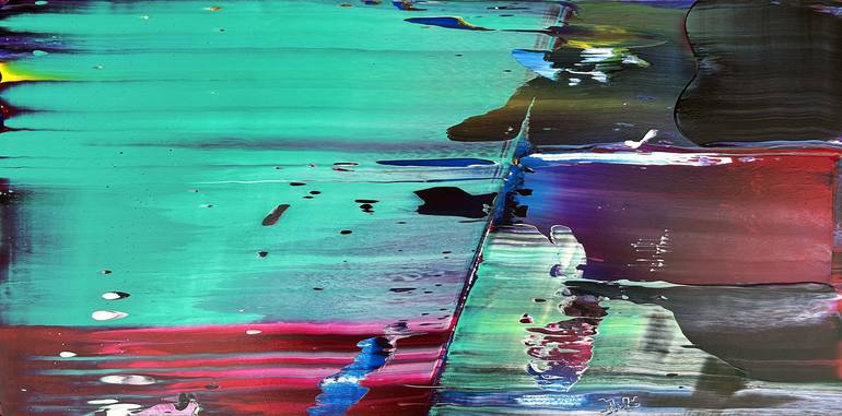 Original PMS Abstract Acrylic Painting On Polished Wooden Panel - 24" x 12" This is a completely unique PMS abstract acrylic painting for your home or office. This piece has a beautiful and magnetic, modern design aesthetic. The colors streak and overlap, while also being contrasted by subtle color...