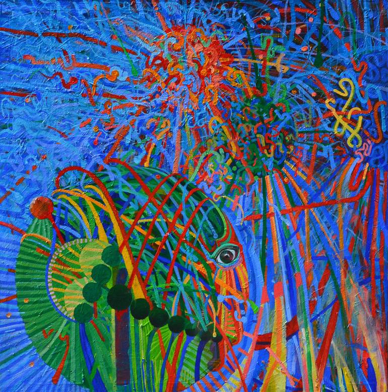 Richard Heley is a Painter, live performace painter, interactive painting with children, International performance poet and storyteller. Wild surrealist, philosophical dreamer, beautiful colourist, wacky storyteller with universal poetry. Nicholas Usherwood, Art Critic, writes of Richard : "Performance painting, poetry slam champion, interactive art with young children - such activities are not the normal profile of a committed and intensely serious-minded and hugely prolific artist but then Richard Heley's whole creative career has not followed any remotely conventional pattern. Born in Bedfordshire in 1950, he emigrated, aged 15, with his whole family, to Australia. It was a liberating decade spent there during which he quickly and, for the first time, became aware of the strength of his creative instincts and though he would have loved to go on to art school, family economics dictated a teacher training course at the Melbourne College of Education. In the strongly egalitarian society that Australia then was, this was no advantage however, such institutions being powerhouses for social and cultural change and Richard Heley found himself among some remarkably gifted and passionate teachers, most particularly in the sculpture class. Though this was not to prove his particular artistic direction, one senses, from the way he talks about this period of his life, that it was the attitude of this particular teacher, which has stayed with him ever since. But, not long after finishing there, a nostalgia for home and the fate of his village football team (of which he and an 80 year old man had been virtually the sole supporters!) drew him back to England where, painting and performing furiously, he has been based ever since. As might be expected from all of this, the painting that has emerged, particularly over the last ten years or so as he has slowly started to focus on his own rather than his more collaborative artistic activities, reflects this extreme unconventionality.