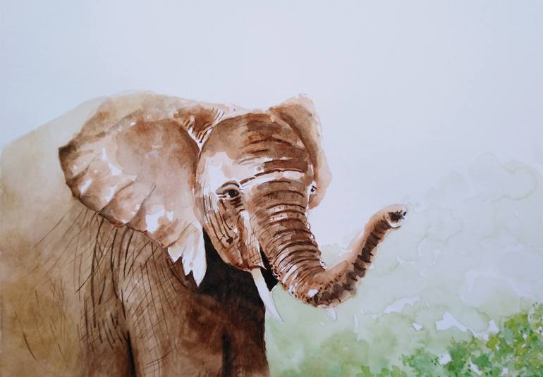 "Elephant In The Wild" - Original watercolor painting on 300gsm paper. Photo reference from