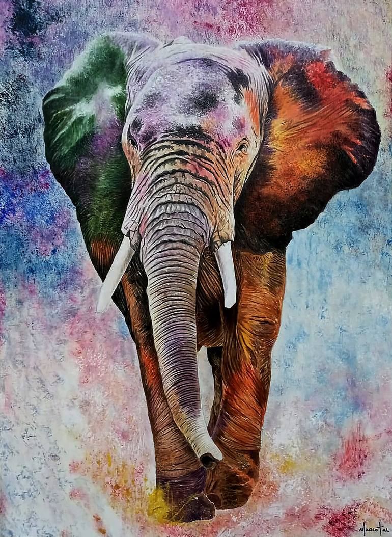 The artwork “Elephant” is an intriguing piece of art that explores the symbolism of this powerful animal. The elephant is an animal that is often associated with wisdom and strength, and these aspects are highlighted in the work through the vibrant colors and elaborate textures that make up the back...