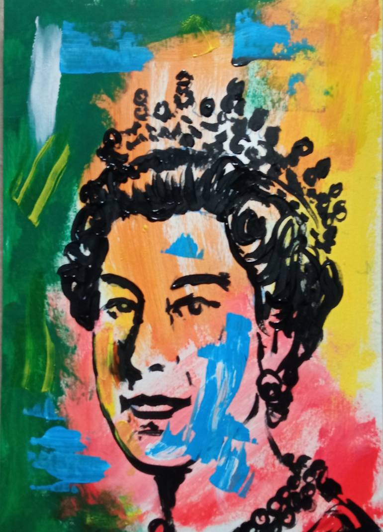 This Is best series of Elizabeth II Quinn in UK all works Is unique art painting on paper 290 gr. Signed by Roberto Scala style street art