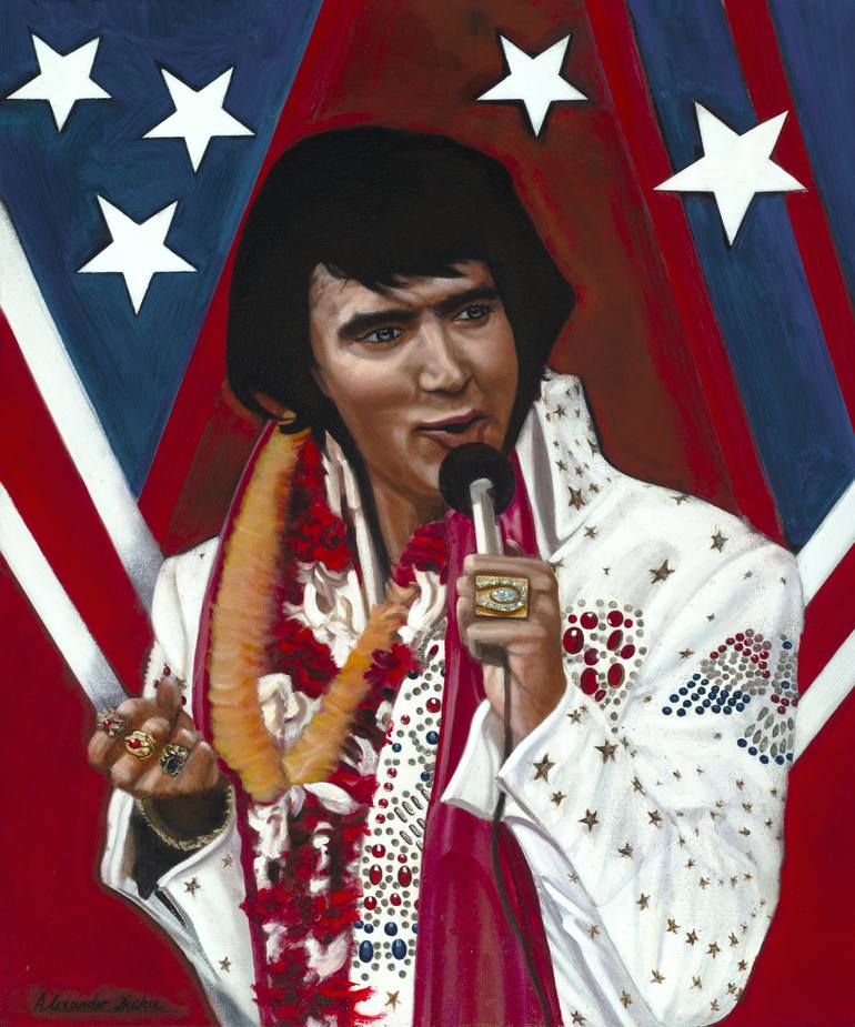 My own Original Artwork of Elvis Presley. This painting was painted from the Concert Aloha from Hawaii, broadcast Live via Satellite on January 14th 1973. In the painting the particular song that Elvis sang was " I'll remember you " Elvis the king at his very best. Oil on canvas - Painted with v...