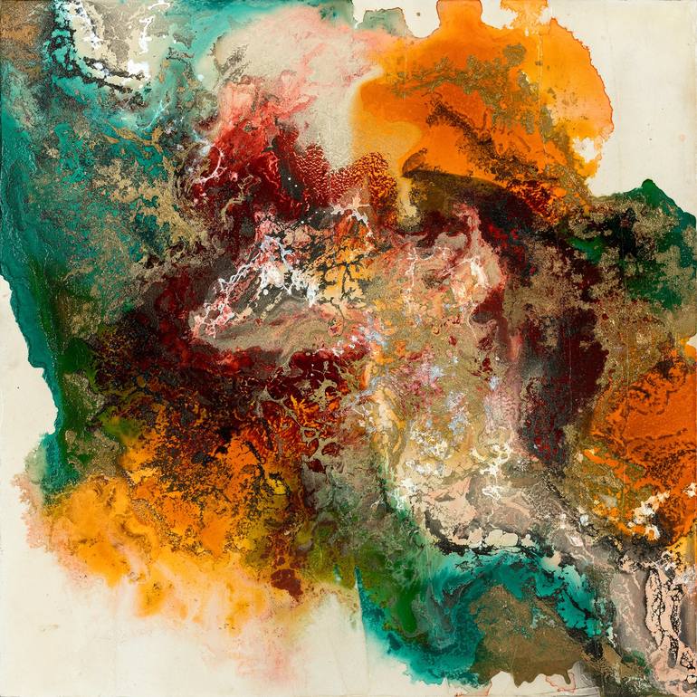 Inspired by slow burning embers near a fireside, the fluid movement and warm color tones of this original painting envelopes the viewer in enrapturing enchantment.