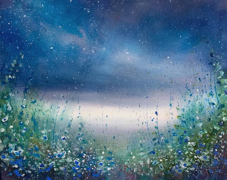 Entitled: Emerald Eden - Beautiful Original Oil Painting On Linen A beautiful sanctuary of stars awaits, a magical garden filled with greens and blues sparkle in the beautiful light. Captivating surface textures reveal secret hidden flowers and petals. There is something new to discover every time ...