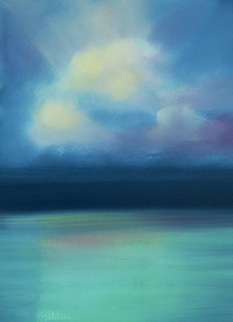 These are studies on paper of the sea. They are signed lower right. There is a small boarder around the edge where the paper was taped to a board. My aim with these abstracted landscapes is to create paintings that allow viewers to escape into the natural world. Each piece is based on real places, ...