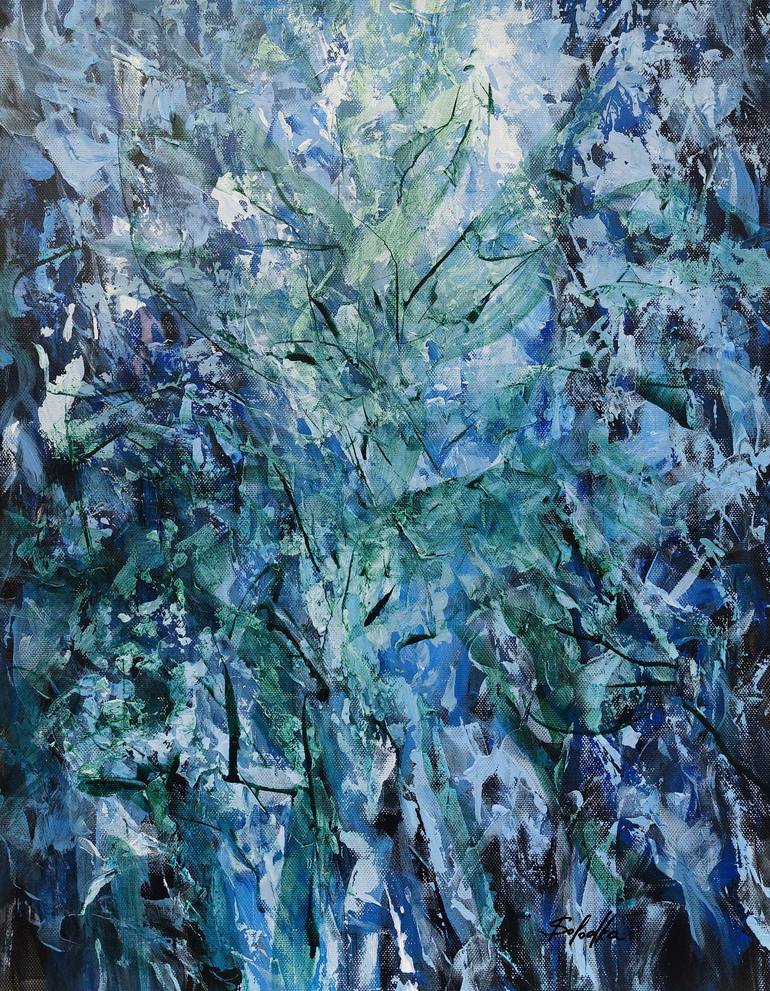 Emerald Stillness is a meditative abstract painting inspired by the quiet elegance of natural forms. Deep emerald greens blend seamlessly with oceanic blues and soft whites, evoking the feeling of still air in a hidden forest or the calm depth of underwater flora. The layered, textured surface invit...