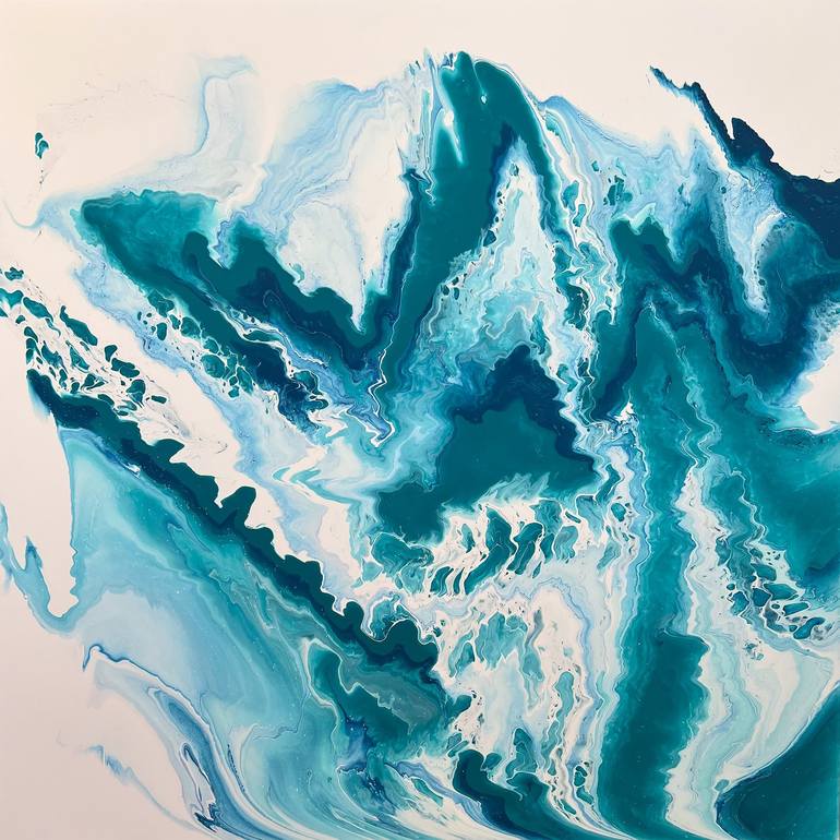 In this vivid dance of turquoise and emerald, I've tapped into the metaphysical, letting my acrylics cascade across the canvas like a cosmic sea. It's an abstraction rooted in the energies of the universe, a semi-abstract expression where fine art meets the unrestrained joy of comics. This painting ...