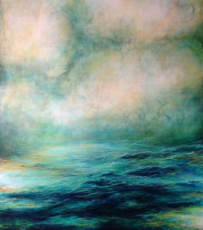 This painting was featured in British Vogue April 2018. I like to immerse my imagination into atmospheric environments, where clouds integrate with water, surface and light. These subconscious spaces of retreat reveal themselves to me through the built up layers of paint and textures. They are ...