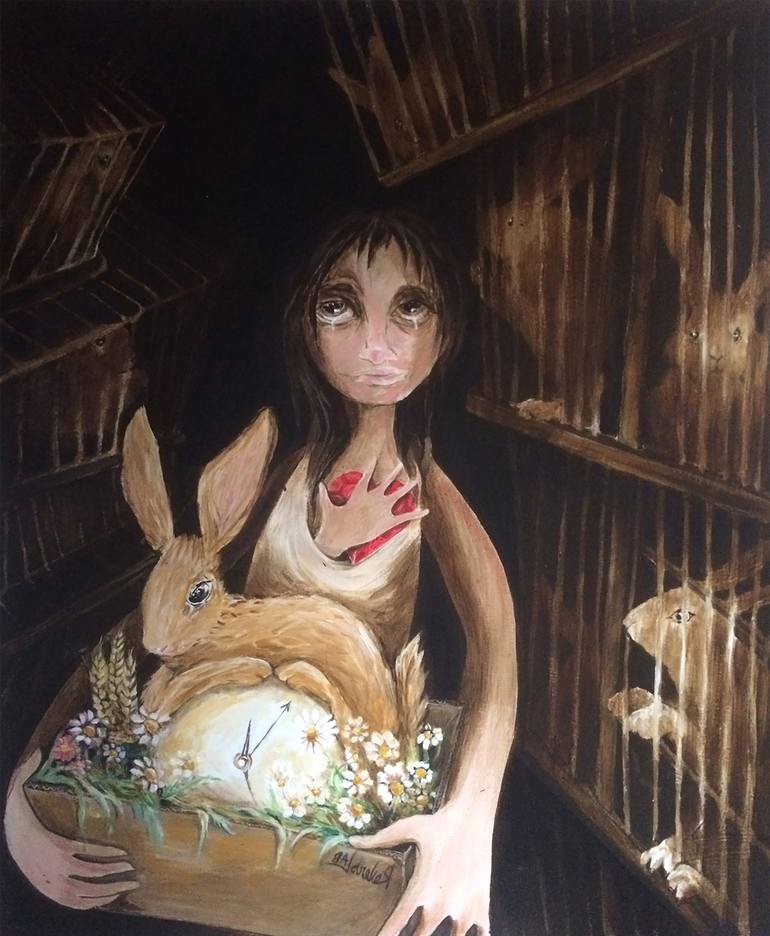 Inspired by a personal story. In questo momento 340 MILIONI DI CONIGLI, nella sola Unione Europea, TRASCORRONO LA LORO BREVE VITA IN GABBIE PICCOLE E ANGUSTE, per poi finire macellati senza mai conoscere la luce del sole, ne i fiori dei campi... privandoli di ogni comportamento naturale. Come ti se...