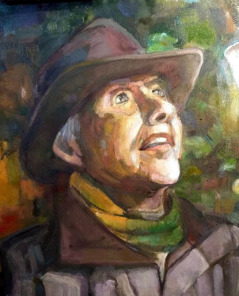 This is a painting of my friend Emile D'Amico who is a very accomplished harmonica player and a garden gnome who has a great appreciation of light, (in the spiritual sense)
