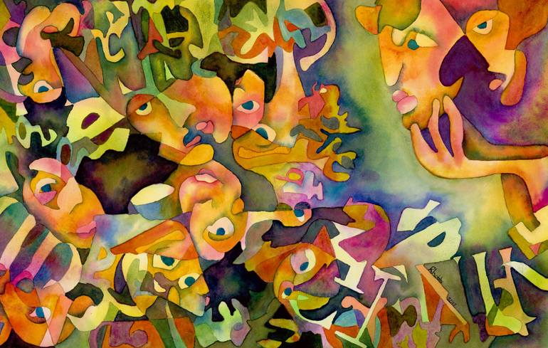 This work is part of a series that explores using watercolor to create lush depth. I build this painting using many washes. The finished work almost looks like a satiny velvet. I hope to express an idea that is fun, colorful and is thought-provoking.