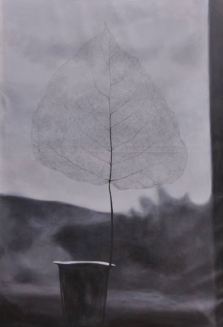 The Creator has expertly captured the stillness of the remnants of a fallen leaf blowing through the wind, where it has journeyed to a window and is pressed up against the glass. The stem of the leaf has been sketched to perfection and been made prominent, while the leaf itself and the veins in it s...