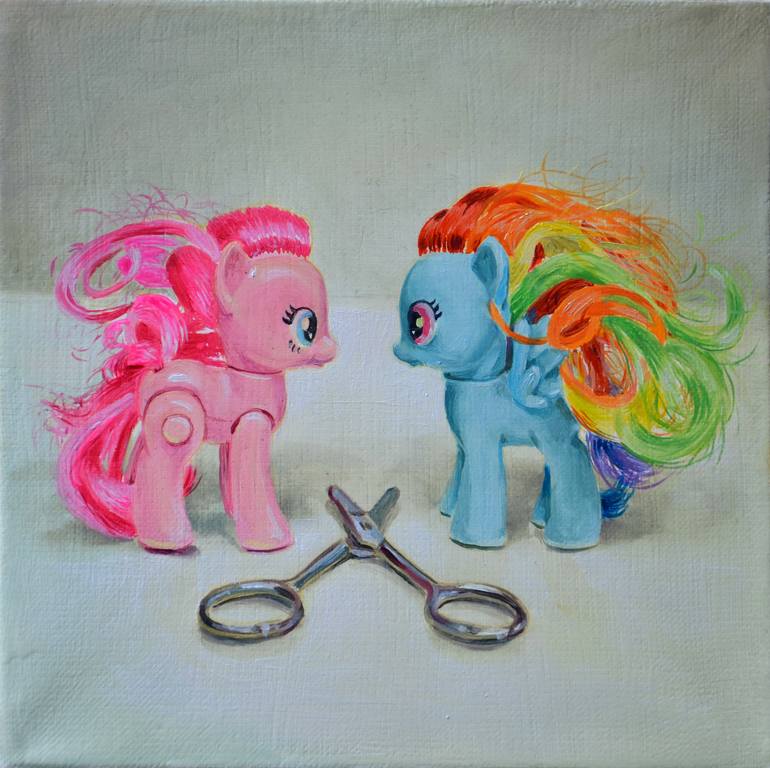 It' filling when you have scissors ready to cut pony mane. The work took part in an international exhibition " Let's live with less plastic" and was outdoor exhibited in Rotterdam and on Times Square in New York.