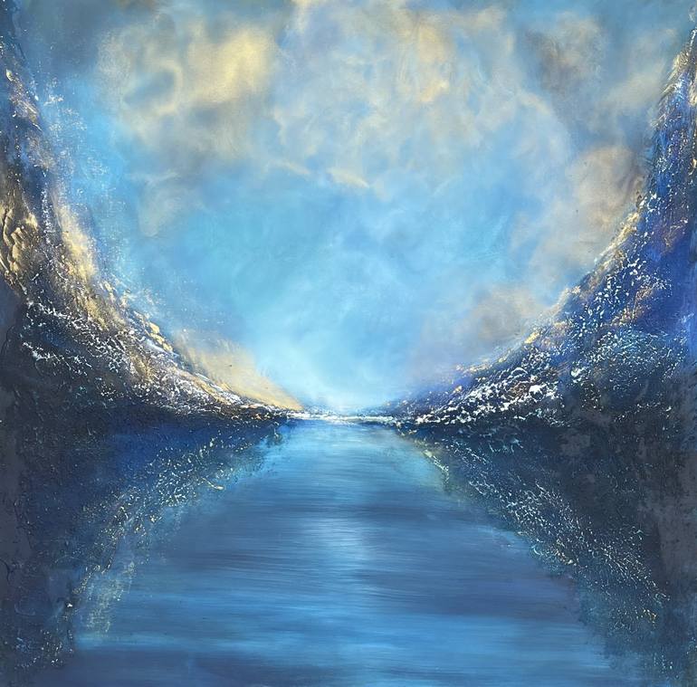 This painting, Endless Love, is a mesmerizing acrylic artwork on canvas 100x100 cm, that evokes a sense of infinite connection, serenity and elegance. The composition draws you into a luminous horizon, where a radiant sky meets a reflective body of water, symbolising unity and eternity. With a harm...