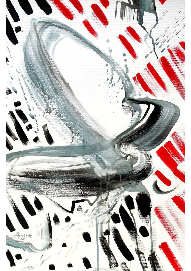 Sometimes I like to allow myself anything on paper or canvas and don‘t overthink it. Just do it. This is one of those paintings. Often they have a certain energy or mood about them. The twin painting is „Explosive“.